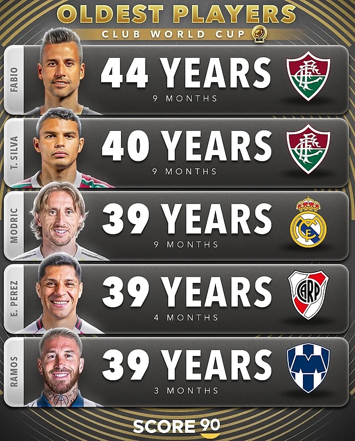В список ветеранов также вошли легенды Тиаго Силва и Лука Модрич. Серхио Рамос, занявший последнюю строчку рейтинга, младше Энцо Переса, расположившегося на четвертом месте, всего на месяц.