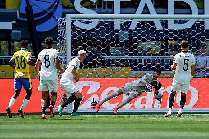 Пока африканцы приходили в себя и перестраивали свою игру, немцы усилиями Беллингема перед самым перерывом довели счет до 3-1. Брандт совершил рывок по правому флангу и прострелил в центр вратарской, где Уильямс в прыжке рукой выбил мяч в центр штрафной площади, а Беллингем, выиграв позиционную борьбу у Альенде, ударом с 15 метров спокойно поразил правый от вратаря угол ворот.
