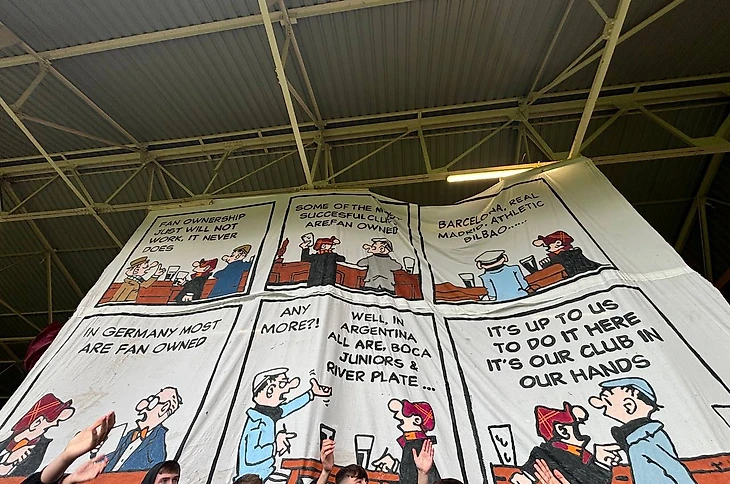 Перф фанатов «Мотеруэлла» на тему возможности управления клубом самими болельщиками, исполненный в стилистике комикса Andy Capp