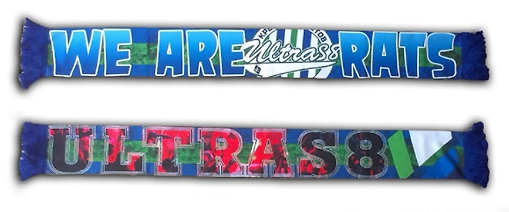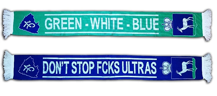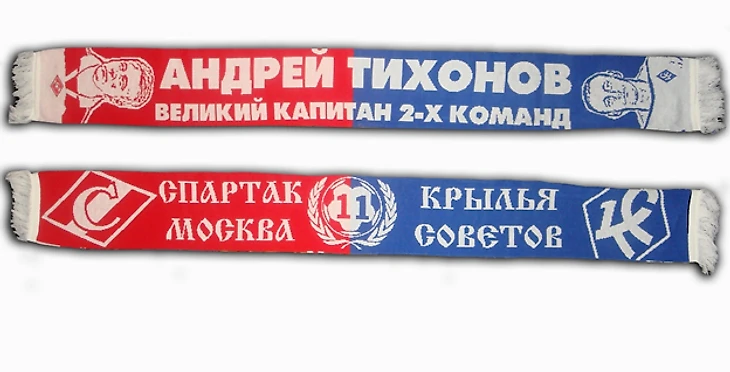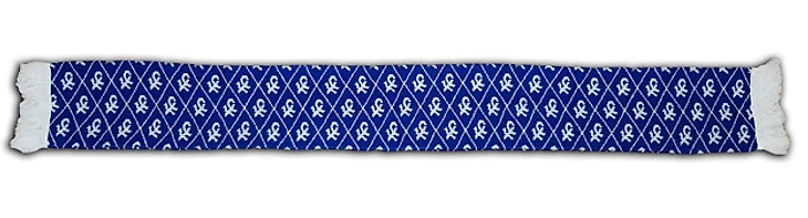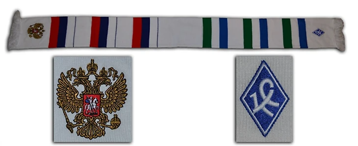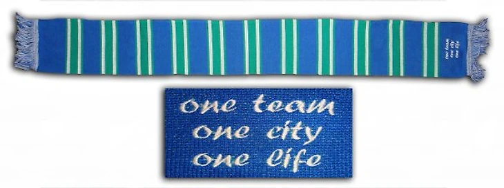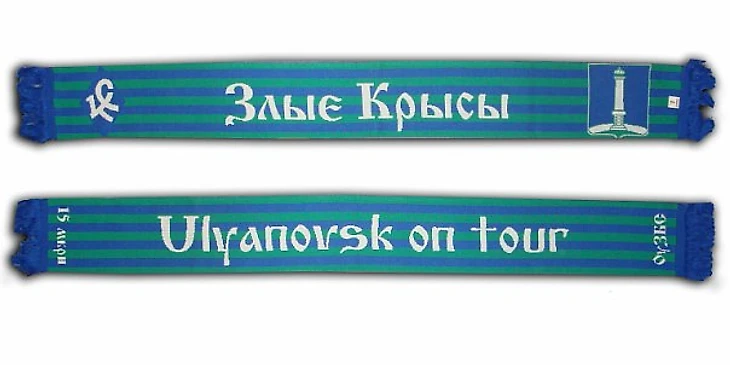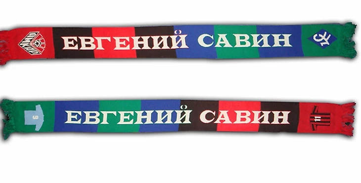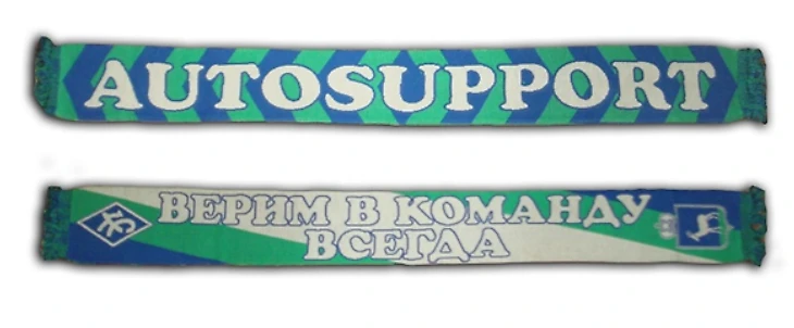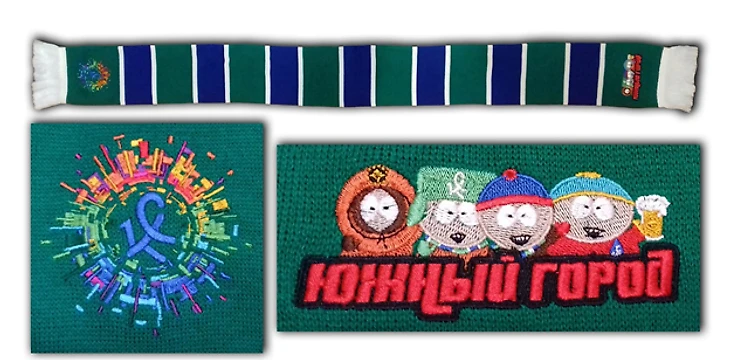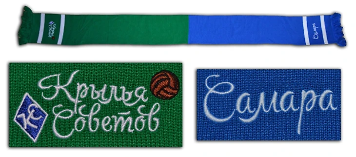 Тоже шарф массового сегмента, делался много, разными немного шрифтами, цветами (разные оттенки синего)