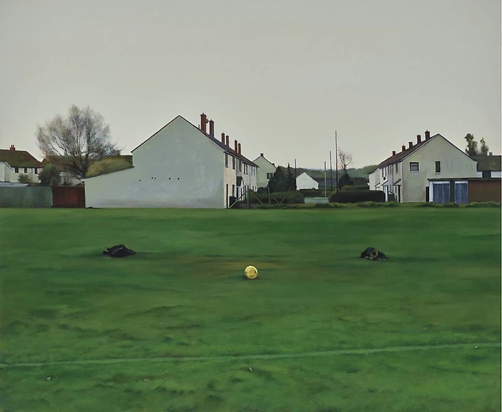 Его картины и рисунки изображают автобусные остановки, телефонные будки, пабы и граффити на фоне частных или многоквартирных домов и просторов серого неба.