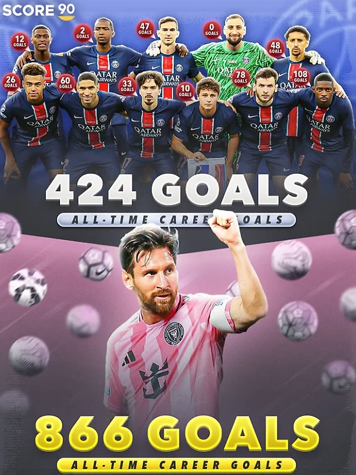 424 гола подопечных Луиса Энрике против 866-ти голов Лео, аргентинец обошел парижан на 442 мяча!
