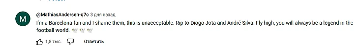 «Я фанат Барселоны, но это неприемлемо, покойтесь с миром 🕊️🕊️ Диого Жота и Андре Сильве»