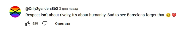 «Уважение не в соперничестве, а в человечности. Грустно видеть, что Барселона забывает об этом 😔💔»