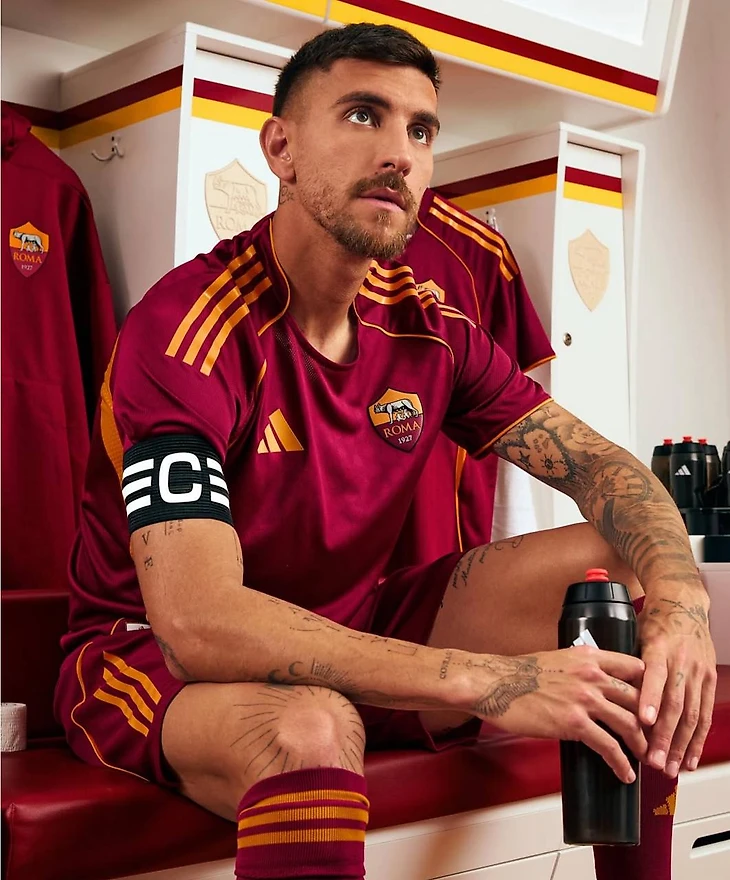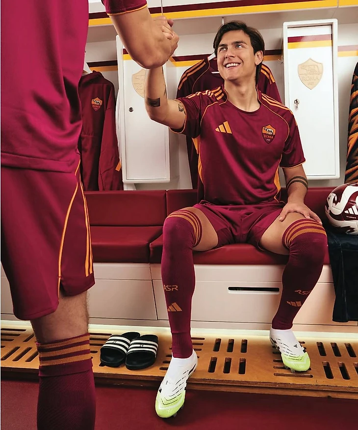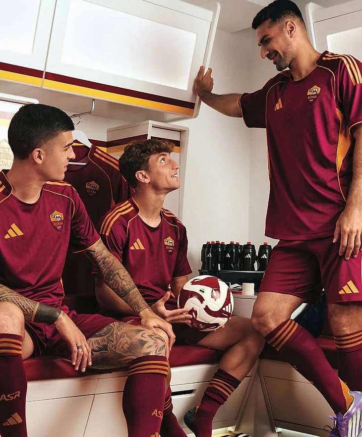 Над самим дизайном комплектов adidas, похоже, не запаривается – это стало особенно очевидно, когда бренд выпустил домашнюю форму «Ромы» на сезон-2025/26. Да, фотографировали игроков в раздевалке.