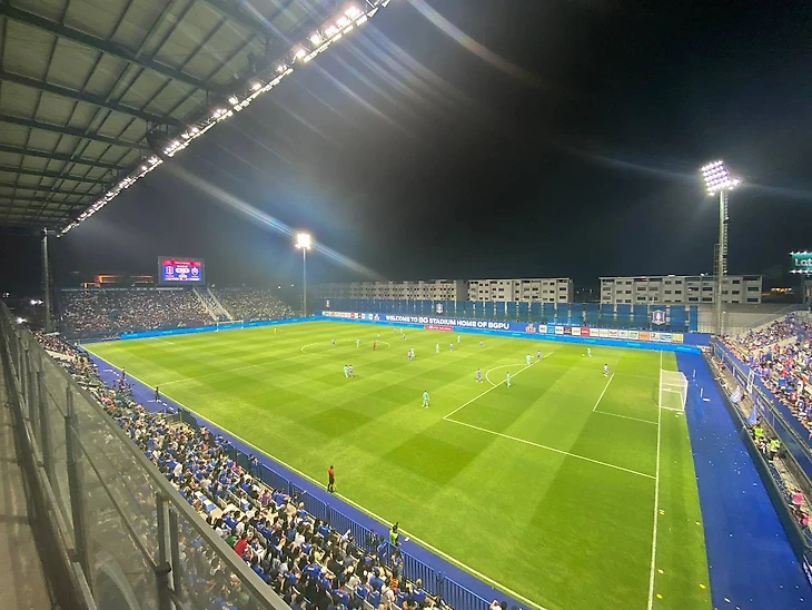 Вот так, внезапно, и случаются самые долгожданные вещи. Не помня себя от радости, я поспешил на трибуну, под завязку забитую болельщиками. Вскоре уже попивал пиво, глядя на попытки «Би Джи» отыграться в начале второго тайма. Но первым делом, зайдя на стадион, я решил его изучить, сделать фото и отметиться стикерами на память.