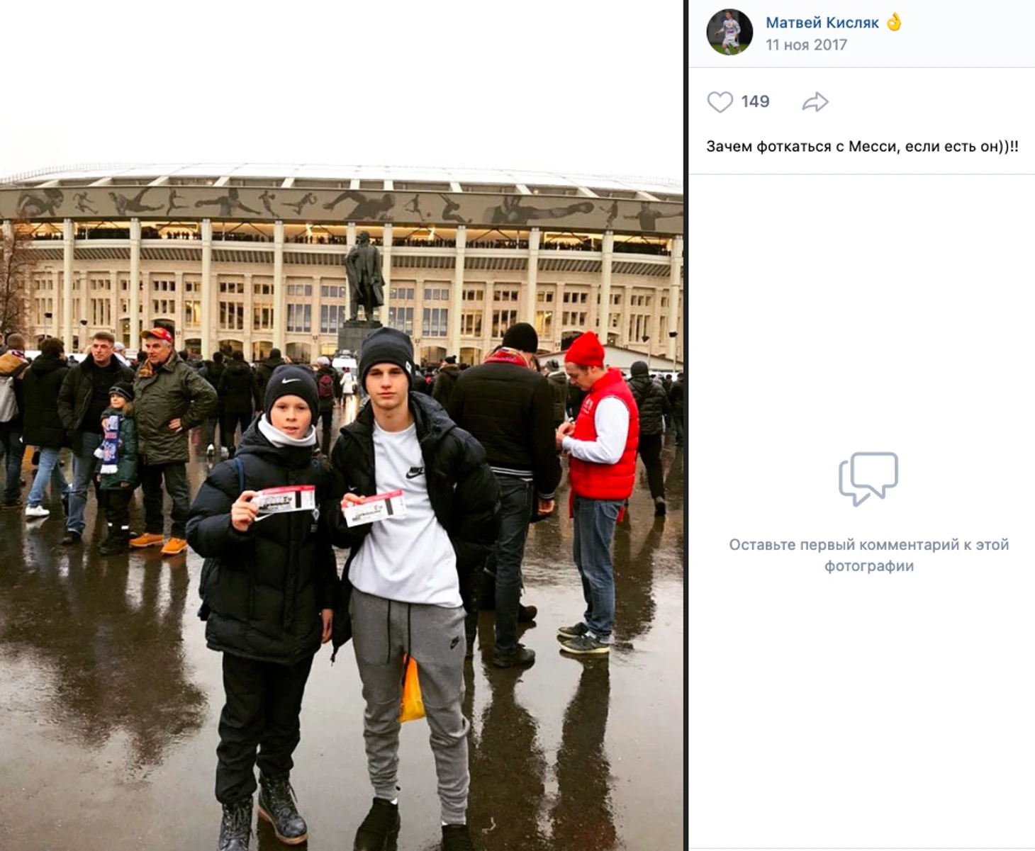 Через два года Кисляк сходил с Пиняевым на матч с Аргентиной в «Лужниках» и фото с Сергеем подписал так: «Зачем фоткаться с Месси, если есть он».