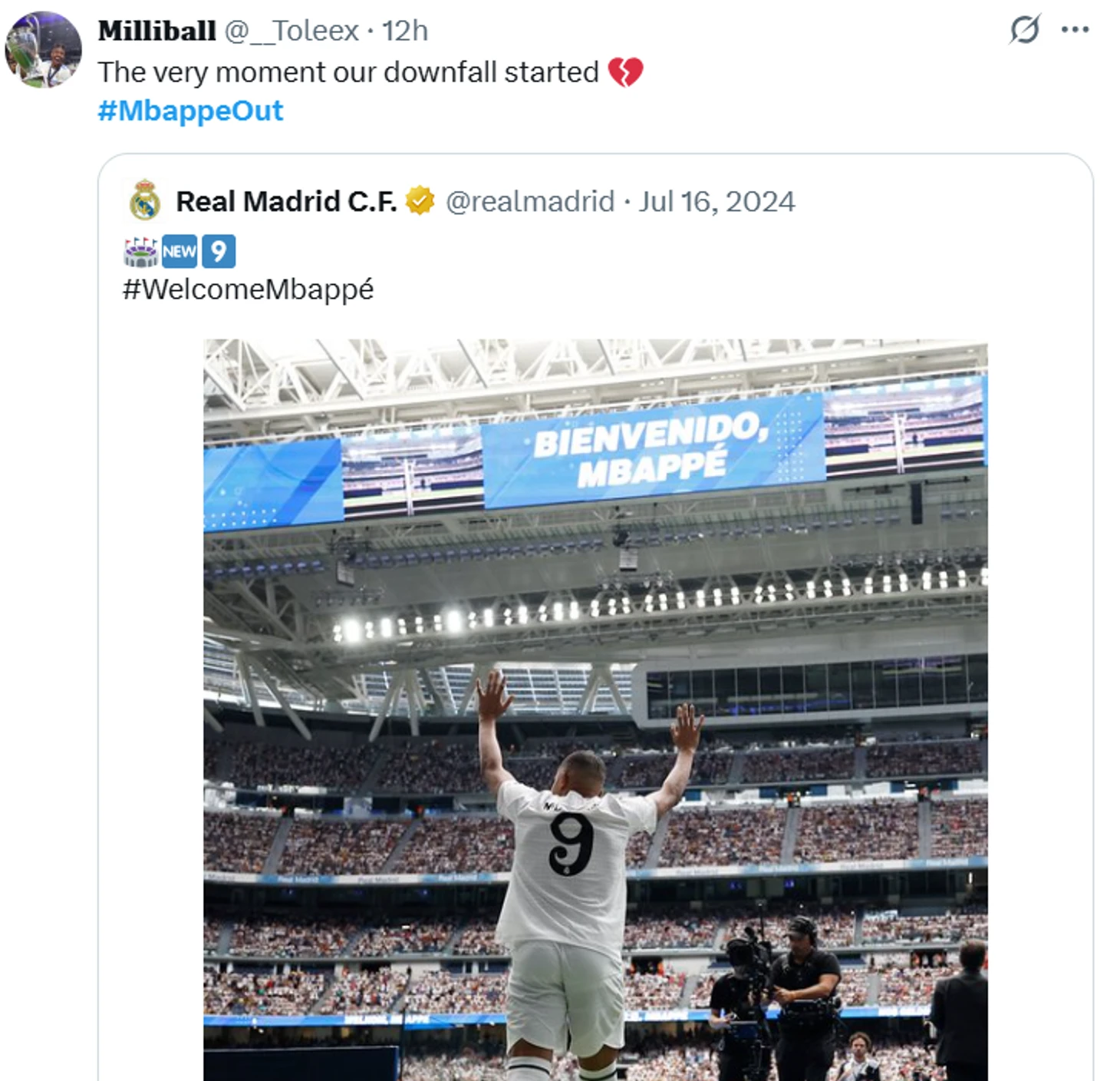После поражения экс-клубу на КЧМ Килиан столкнулся с хейтом собственных болельщиков: некоторые фанаты «Мадрида» начали выводить в тренды #MbappeOut, обвиняя в неудачах клуба капитана сборной Франции.