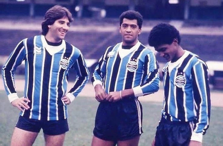 О, в футболе мне очень повезло… Мне довелось работать с ним: Теле был великим человеком. Монстром: он знал своё дело и пользовался всеобщим уважением. Уже в составе Селесао 82 он сумел заставить людей немного забыть о Бразилии 1970 года. С ним мы играли в прекрасный бразильский футбол, в футбол арте . Конечно, я сожалел о упущенном титуле в 1986 году. Но больше всего меня ранил 1982 год. Когда мы проиграли Италии 2:3, я плакал как ребёнок, потому что у нас была команда мечты. В Бразилии перед матчем царило безумие: петарды, крики, музыка, гудки на улицах. «Бразилия! Бразилия!» А потом, в конце матча, когда судья дал свисток, тишина… Ни звука. Ни машин. Ничего! Незабываемая тишина… И вдруг, через пять минут, жизнь возобновилась. Я был на тренировочной базе «Гремио»: все плакали как дети… Вот это футбол. Мне было 18 лет.