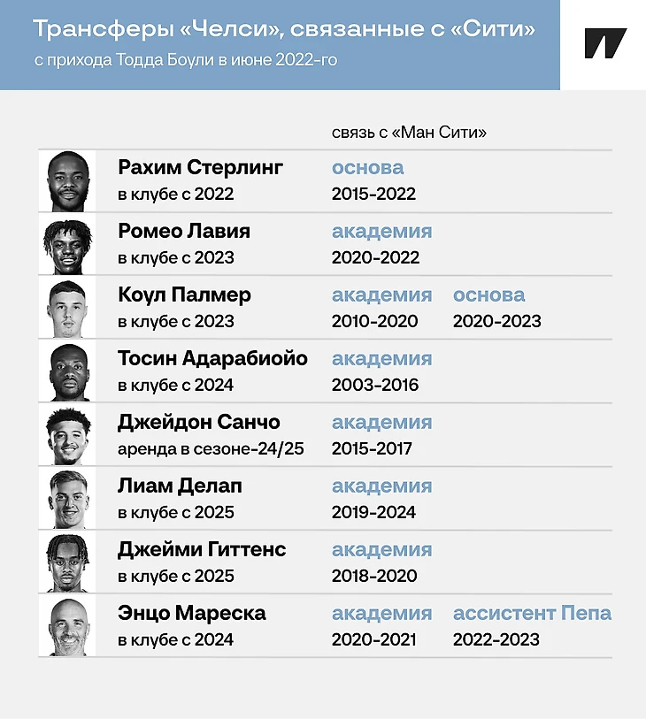 В начале июля в «Челси» из «Боруссии Дортмунд» перебрался Джейми Гиттенс. Теперь на «Стэмфорд Бридж» шесть игроков, которые прошли через «Манчестер Сити». Добавьте сюда Энцо Мареску – он тренировал молодежку «Сити» и поработал ассистентом Пепа Гвардиолы.