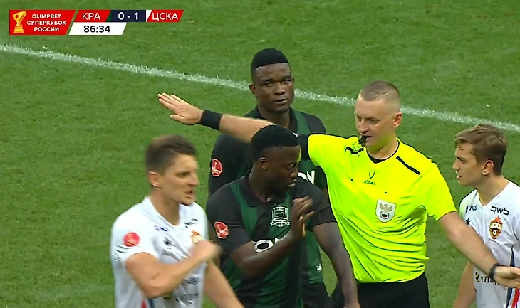 Судью Артема Чистякова позвал ВАР, так как изначально Мозес наказания не получил.