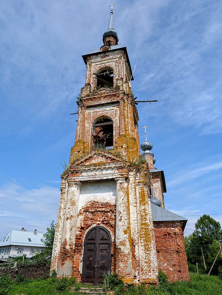 Вы наверное заметили, что половина игроков Интера не похожи на местных жителей. Вот ссылка на составы команд🤨. Как говорится, думайте. Оставаться более на матче не очень хочется, потому поехали-ка лучше в Кохму. Итоговый счет 5:1. Дорога идет через Шую, мы с вами были там в прошлом сезоне. На фото ниже вдалеке виднеется главная доминанта города – Колокольня Воскресенского собора📸.