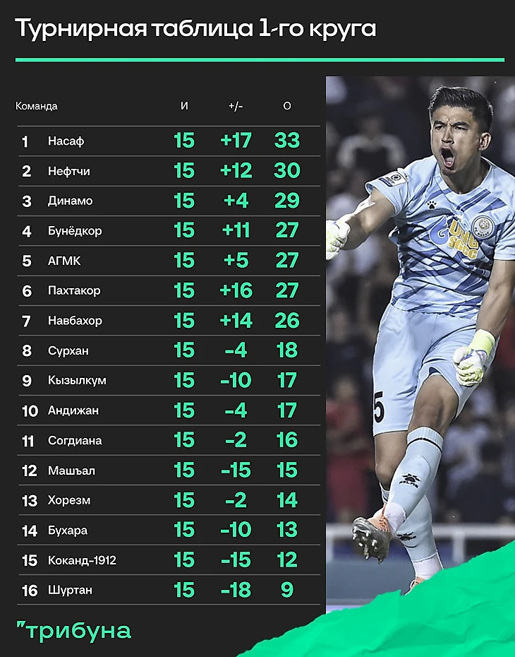Несмотря на неудачный вояж по полям Лиги чемпионов АФК, во внутреннем первенстве «драконы» выглядят главным фаворитом на титул. После первого завоеванного чемпионства Рузикул Бердыев сумел избежать спада. «Насаф» катком прошелся по всем соперникам в первом круге. Даже по сравнению с аналогичным отрезком прошлого сезона каршинцы улучшили целый ряд показателей: в 2024 году после 15 туров было одно поражение – сейчас их нет. Тогда было забито 21 мяч – сейчас 29.