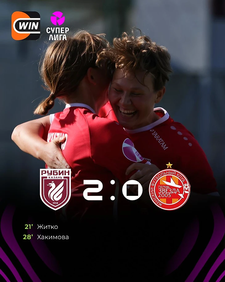 «Рубин» здорово по-хозяйски начал матч, и на 21-й минуте Житко открыла счет встречи. Кстати, для нее это был дебютный гол в Суперлиге, поэтому поздравляю Каролину с этим достижением. Не успела «Звезда» прийти в себя, как «Рубин» удвоил свое преимущество в счете. На 29-й минуте Диана Хакимова забила 2-й гол после шикарной передачи все той же Житко. И как позже выяснилось, этого вполне хватило «Рубину», чтобы одержать 2-ю победу в сезоне над «Звездой».