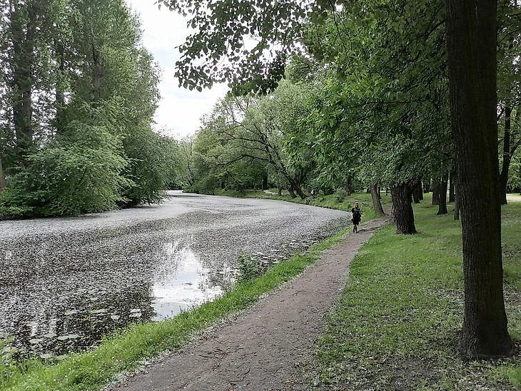Из этого пруда через систему шлюзов вода идет по каналу в Петергоф на фонтаны. В детстве частенько с пацанами прыгали с этих шлюзов в воду🏊♀️