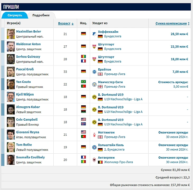 Говоря о сегодняшнем дне и этом трансферном окне, я пока не возьмусь критиковать Келя. До конца лета еще больше месяцев, а многие болельщики «шмелей» уже считают это окно провальным. Похожая ситуация была в летом 2023, и тогда мы дождались Фюллькруга и Забитцера, которые дали команде очень много в том сезоне. Так что, друзья, давайте подождем)