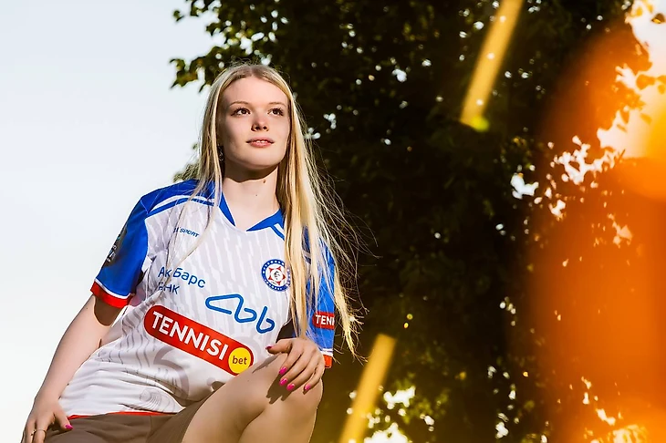 Выездная форма выполнена в синем цвете с белыми вставками на плечах. Она словно броня — сдержанная, но готовая к бою. В этой форме ФК КАМАЗ не просто выходит на матч — он выезжает в рейд за очками.