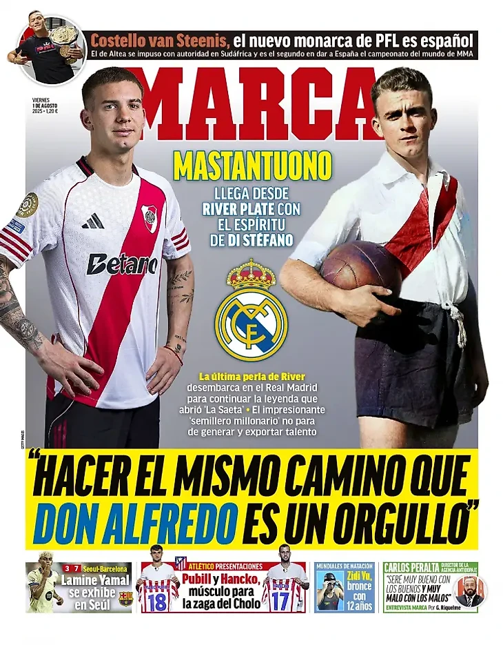 «Реал Мадрид» усилился 17-летним аргентинским вундеркиндом, контракт которого рассчитан до 2031 года. Он присоединится к команде после клубного чемпионата мира. Мастантуоно станет четырнадцатым футболистом, игравшим за оба клуба — «Реал Мадрид» и «Ривер Плейт» — после таких имён, как: