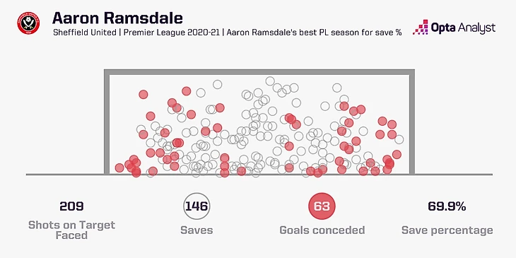 Рамсдейл (183 игры): пропустил -5.0 голов больше ожидаемого