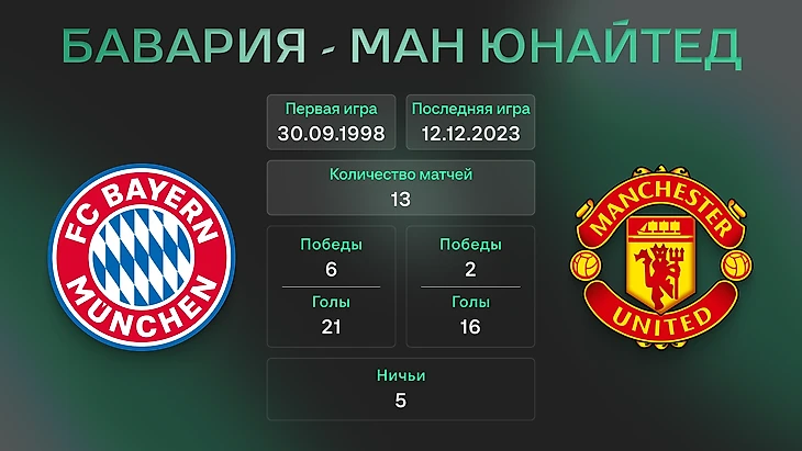 Второй самый крутой камбэк в истории финалов ЛЧ. Помимо матча 1999 года команды провели еще 12 поединков. В целом преимущество «Баварии» в этом противостоянии подавляющее. И в ближайшее время шансов у «МЮ» отыграться скорее всего не будет.