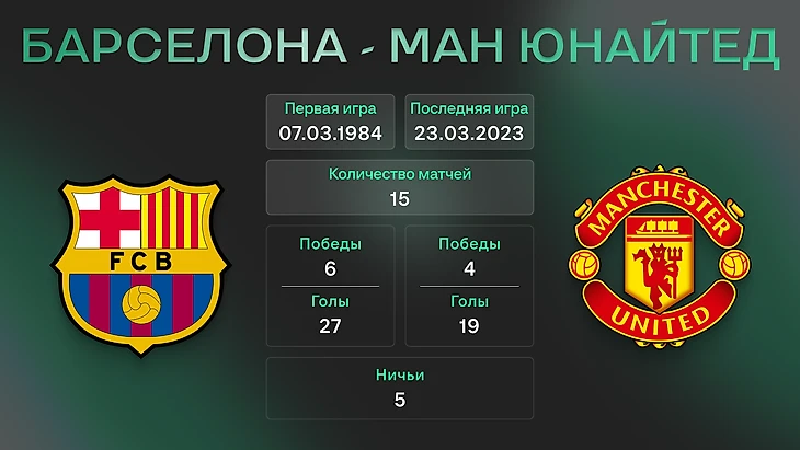 На первый взгляд может показаться, что пара равная с небольшим преимуществом испанцев, но на самом деле из четырех побед «МЮ» две — из Кубка обладателей кубков, одна — из недавнего розыгрыша ЛЕ сезона 2022/23, и лишь одна победа лигочемпионская. Дважды команды встречались в финале ЛЧ — в 2009-м и 2011-м, оба раза победу одержали каталонцы.