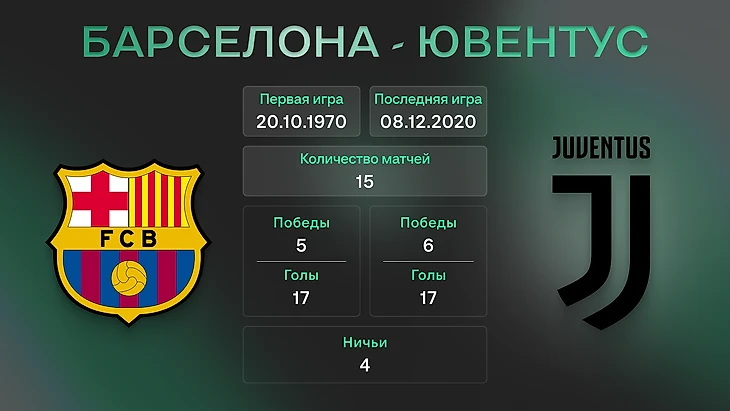 Команды однажды встречались в финале ЛЧ — в 2015 году. Это был тот самый сезон, когда Луис Энрике принес каталонцам требл. В нападении играла легендарная связка Месси — Суарес — Неймар. В общем же небольшое преимущество в этом противостоянии на удивление — у «Ювентуса».