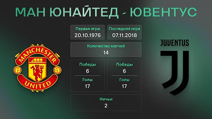 Единственное противостояние в сегодняшнем топе без «Реала», «Барселоны» или «Баварии». Полное равенство и по победам, и по забитым мячам. Ждем возрождения «красных дьяволов» в ЛЧ, чтобы поскорее узнать, кто выйдет вперед в этой паре.