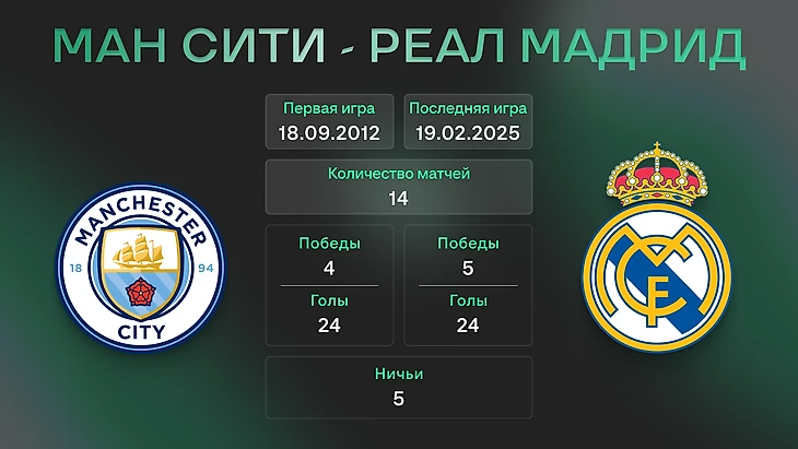 Впервые «Реал» и «Ман Сити» сыграли в 2012 году. То есть начиная с этого года мадридцы играли с манкунианцами чаще чем раз в год! Настоящая классика нашего времени.