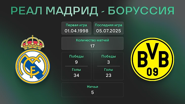 Финальная пара прошлого розыгрыша Лиги чемпионов — на 8-м месте нашего списка. Единственный покер в истории полуфиналов ЛЧ также произошел в одном из матчей между этими командами. Роберт Левандовски в 2013-м тогда вошел в историю.