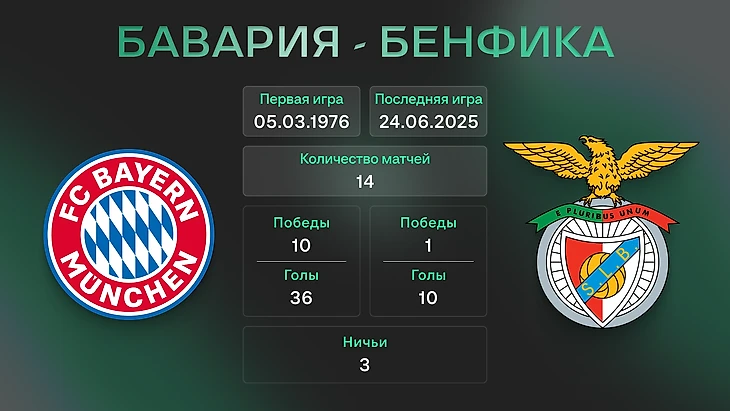 Лишь с 14-й попытки португальцы смогли одолеть немцев. Первая победа «Бенфики» случилась на недавнем Клубном чемпионате мира. Хотя последние три матча до этой игры закончились с общим счетом 14:3 в пользу мюнхенцев.