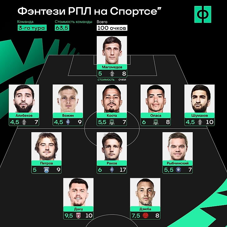 Перед вами сборная 3-го тура фэнтези-турнира по РПЛ: