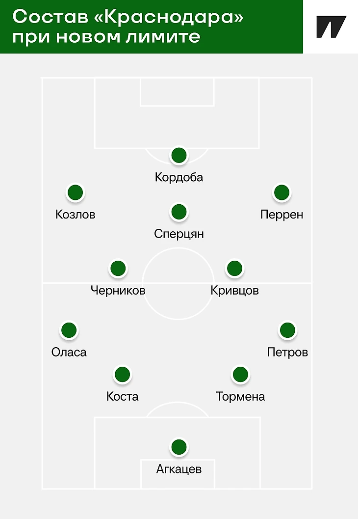 «Краснодар» сохранит привычное сочетание, но Никита Кривцов будет безальтернативен в центре, а слева – Данила Козлов, у которого 370 минут в прошлом сезоне. Также 34-летний Сергей Петров останется без сменщика. Вингеры Виктор Са, Жоау Батчи и Гаэтан Перрен будут конкурировать за одно место справа. Вписать Дугласа или Кевина Ленини практически нереально.