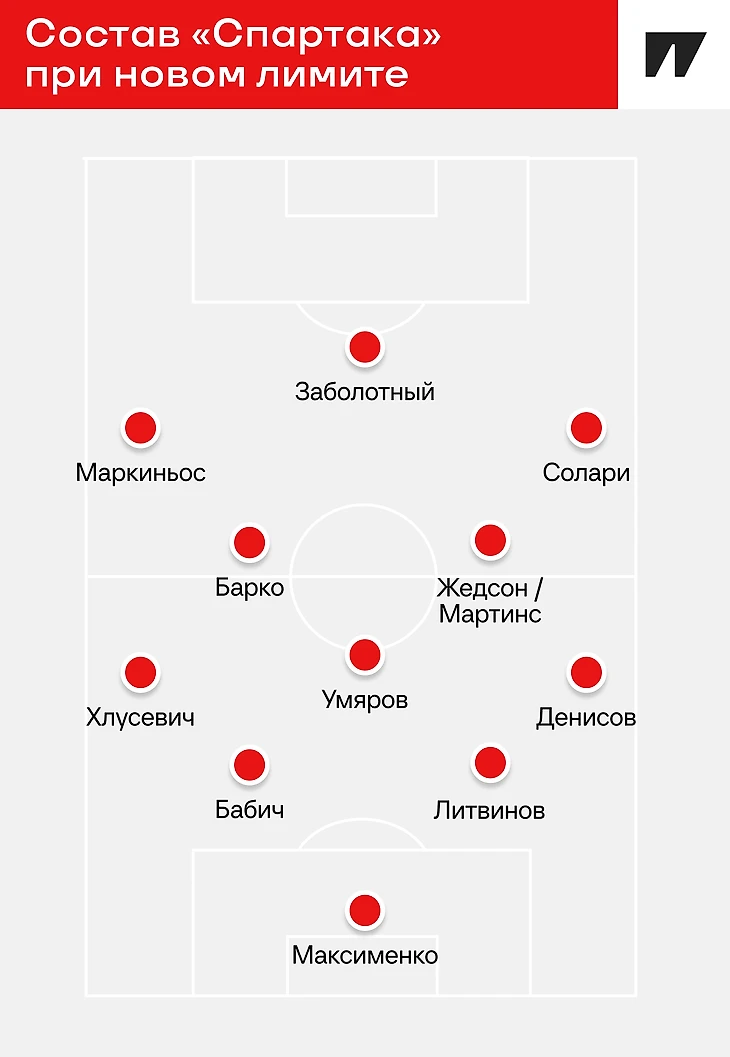 «Спартак» перестанет мучиться с выбором между Даниилом Денисовым и Даниилом Хлусевичем, потому что в старте будут играть оба (кстати, без замен). Еще сядут Манфред Угальде, Ливай Гарсия и Кристофер Мартинс. Чтобы заменить Антона Заболотного, придется выпускать Данила Пруцева или Игоря Дмитриева.