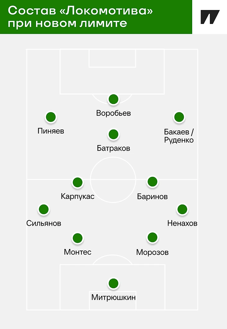 А вот как выглядит идеальный состав российского футбольного клуба, по мнению Минспорта. «Локомотив» – главный бенефициар новых ограничений. Алексей Батраков, Сергей Пиняев, Александр Сильянов, Артем Карпукас – сочнейшие лоты, которые помогут озолотиться. Проблемы появятся, когда всех раскупят.