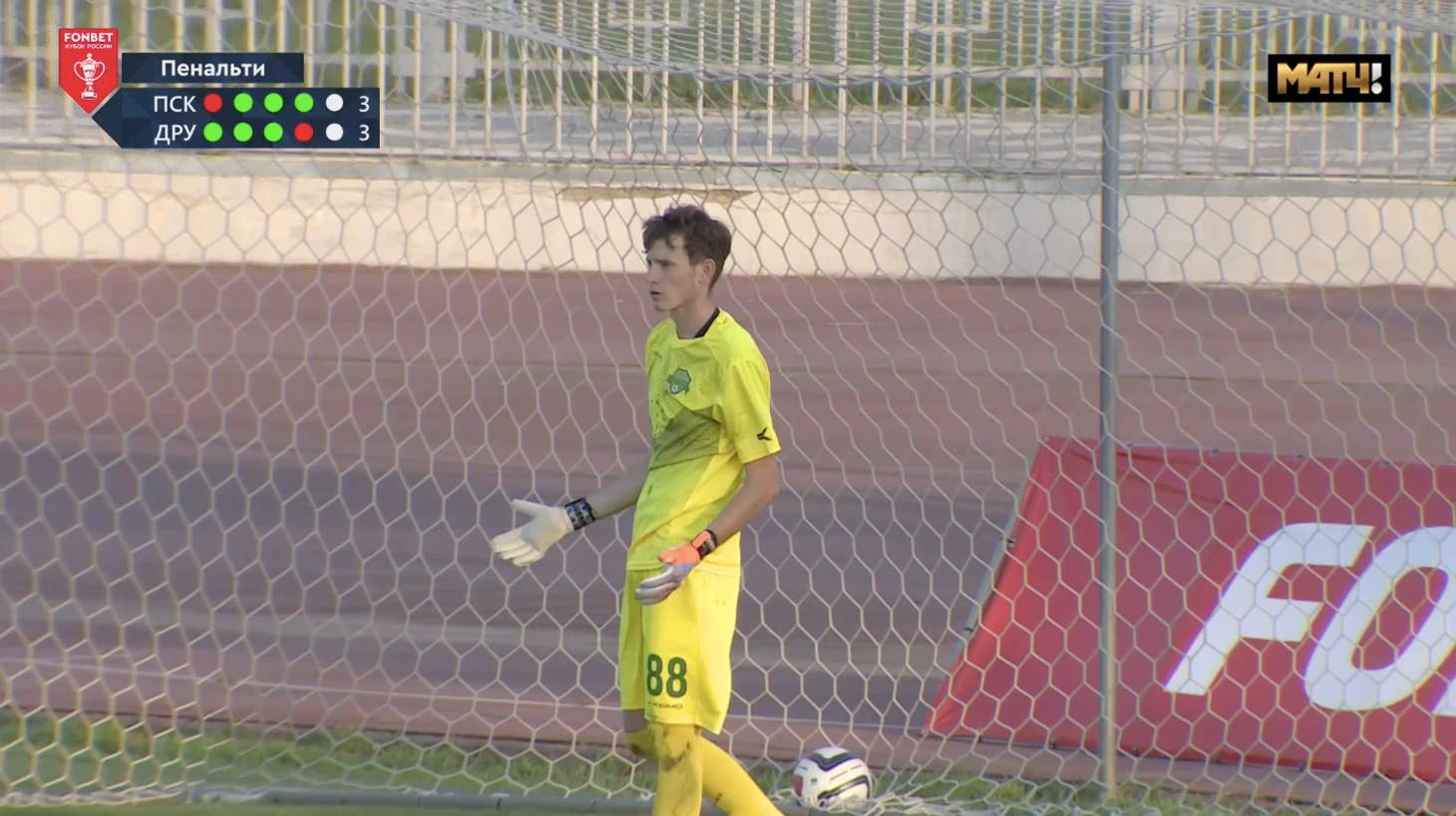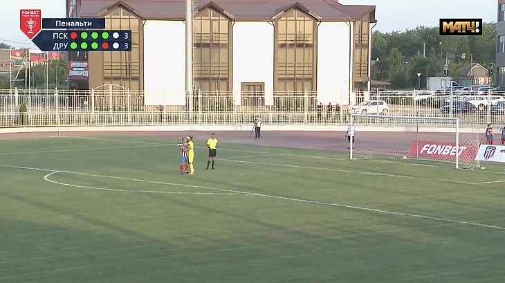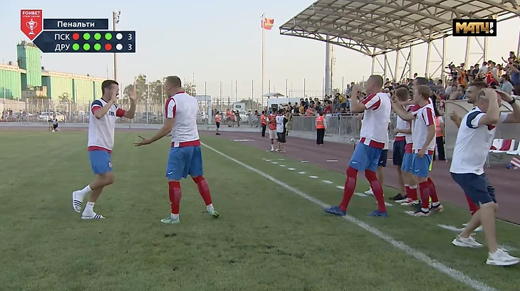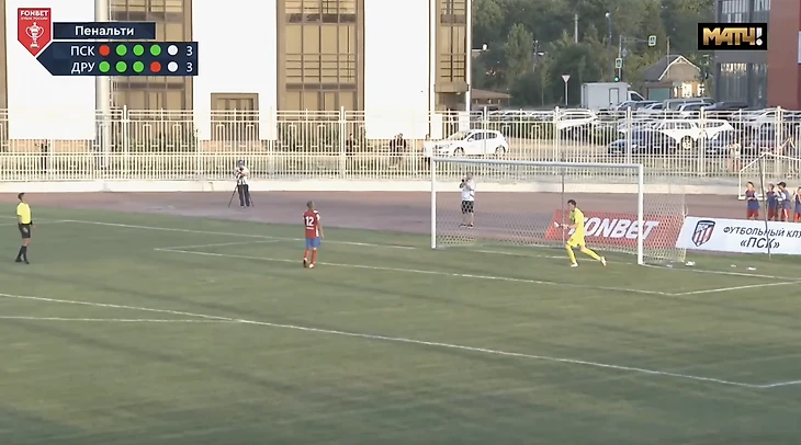 Любительский ПСК и майкопская «Дружба» из Второй лиги Б в основное время сыграли 1:1 – и сразу перешли к исторической серии пенальти. ПСК начал с промаха, причем подвел один из лучших бомбардиров Илья Пшеничников. «Дружба» ошиблась четвертым ударом: нападающий Евгений Рагулькин забил в основное время, но в серии угодил в штангу – и шансы на проход дальше сравнялись.