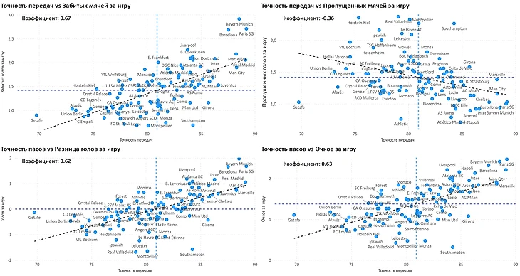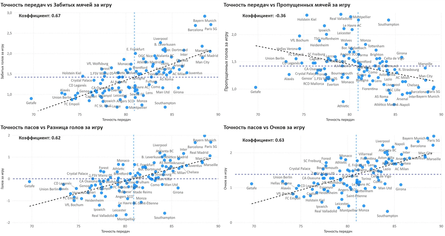 Точность передач: как она связана с успехом? Рейтинги, корреляции и аномалии сезона-24/25