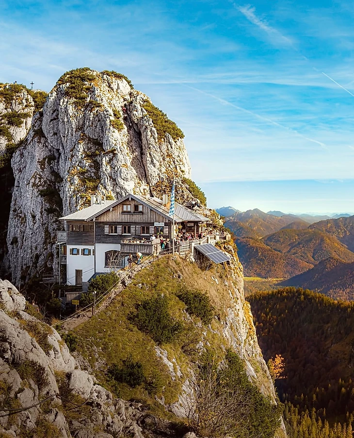 Еще интересная локация — горная хижина Тегернзе — откуда открывается роскошный вид на Баварские Альпы.