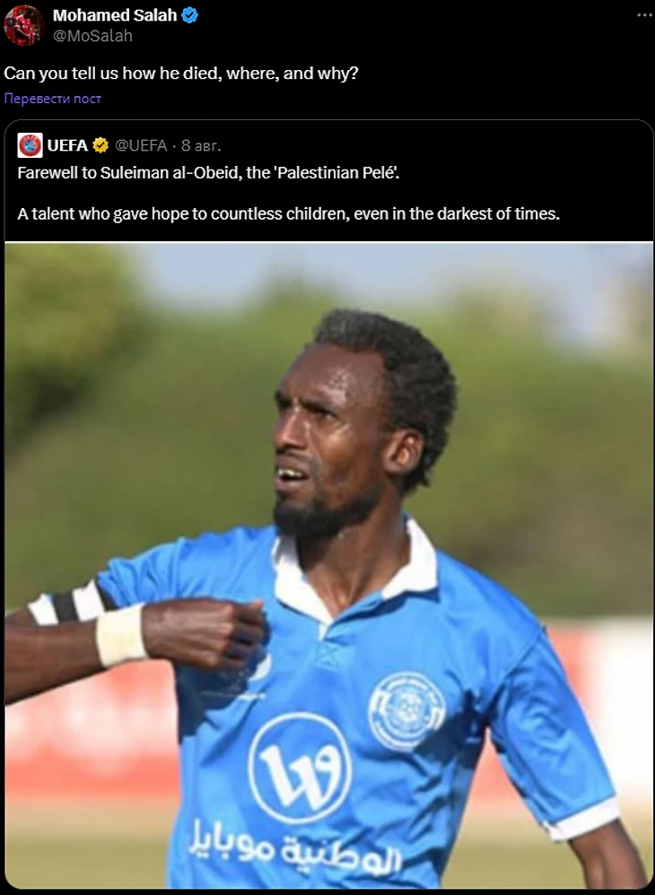 Салах ополчился против УЕФА? Мохамед ответил на пост о гибели «палестинского Пеле» 😮