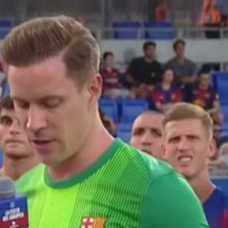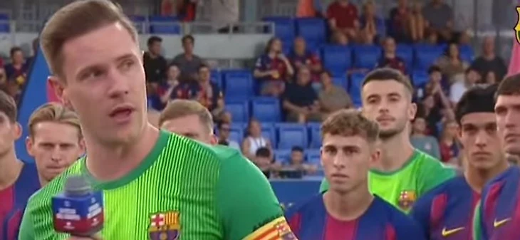 Тер Стеген говорил почти 4 минуты, болельщики обратили внимание на лица каталонцев, слушающих капитана.