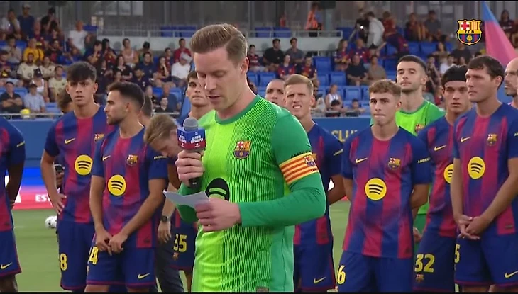 Перед матчем с «Комо» за Кубок Жоана Гампера на «Эстади Йохан Кройфф» «блауграна» представила команду на грядущий сезон. Марк-Андре вышел на поле вместе с одноклубниками, а затем взял микрофон и прочел заготовленную речь – он говорил о конфликте и примирении с клубом, о планах на кампанию, новичках и тренерском штабе.