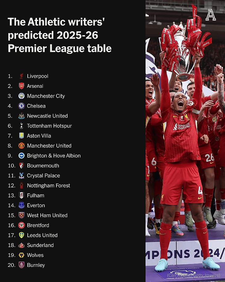 Авторы The Athletic предсказали исход нового сезона АПЛ. И сделали еще несколько смелых прогнозов