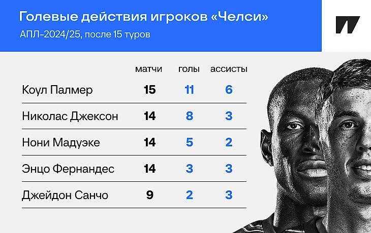 Палмер с отрывом самый полезный игрок «Челси» в атаке: за 33 матча в прошлом сезоне АПЛ Коул пробил 15+8. Палмер поучаствовал в 36% всех голов в чемпионате (64). Ближайшими по голевым действиям в АПЛ стали Джексон (10+5) и Энцо Фернандес (6+7).