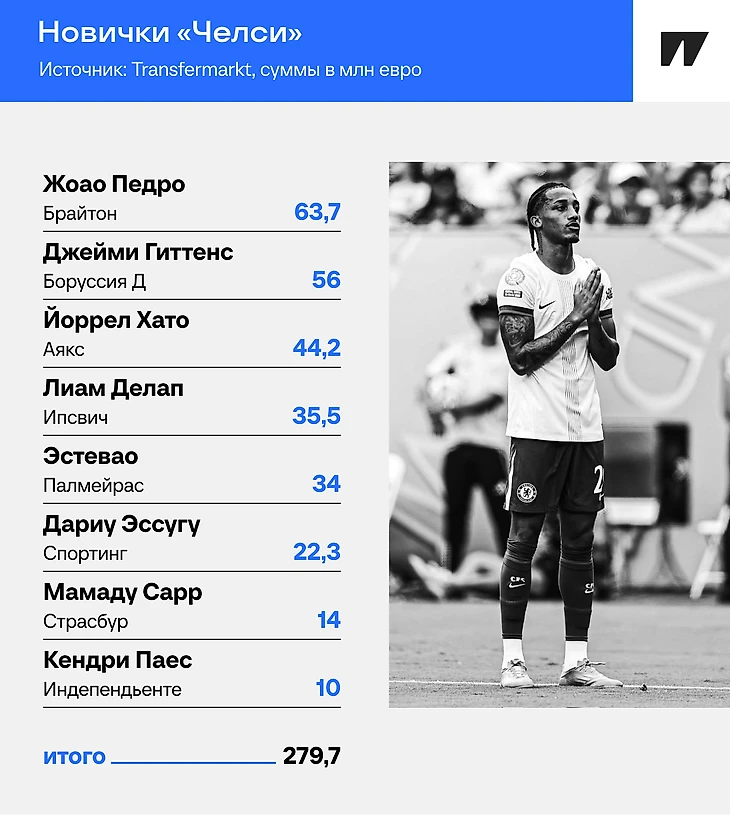 «Челси» крепко усилил атаку: Жоао Педро, Лиам Делап, Эстевао. Добавили поддержку левому флангу обороны, забрав у «Аякса» Йоррела Хато. Не понятен активный интерес к Алехандро Гарначо, но в остальном по полевым игрокам на вход «Челси» сработал убедительно.