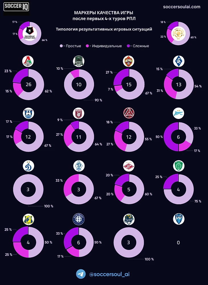 ⚽️Лидер по количеству индивидуальных ситуаций – Крылья Советов (голевые обводки и ведения 50/50).