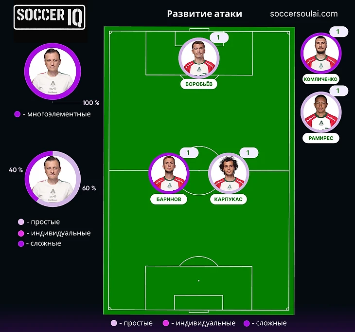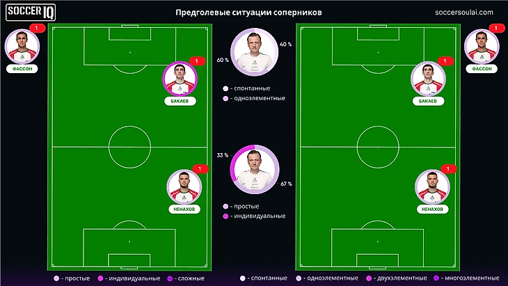 Защитники способны отдать острый пас, Карпукас в состоянии продвигать мяч вперёд самостоятельно. Нивелировать угрозу большинства таких ситуаций может прессинг, а разумное решение персонально по Бакаеву – не давать технически оснащённому футболисту принимать мяч!