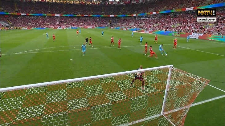 Соболев создал момент себе сам: принял спиной к воротам, развернулся, ушел от защитников и нашел момент для удара с левой.