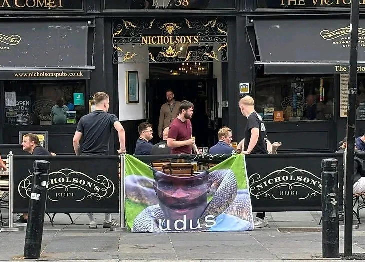 В лондонском пабе группа фанатов «молотобойцев» развернула баннер с изображением змеи и надписью «Иуда» — чёткий сигнал о том, что они считают его поступок предательством.
