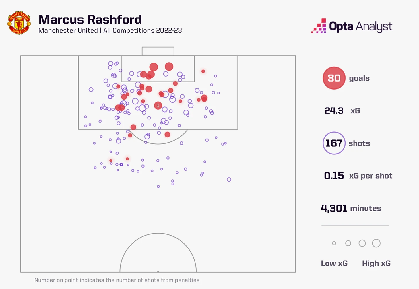 Таким образом, Рэшфорд — не просто дублёр, а альтернативный тип флангового вингера, с другой моделью входа в штрафную: реже через комбинации, чаще — через индивидуальные рывки.