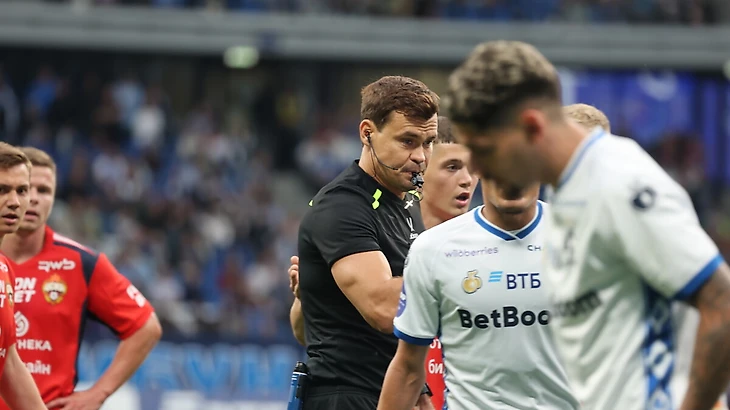 Дальше при счете 3:0 в нашу пользу произошло первое умопомрачение имени Кирилла Левникова. Я хорошо помню, как хвалил его после матча «Спартак» — ЦСКА в концовке прошлого сезона, он тот матч отсудил очень качественно. Может, он даже был лучшим арбитром прошлого сезона в РПЛ. Но то, что он сотворил сегодня... Я не понимаю, как такой опытный арбитр может принимать такие решения. Сначала он показывает желтую карточку Круговому за симуляцию в эпизоде, где было нарушение со стороны Лещука и подозрение на красную карточку вратарю «Динамо», поскольку голкипер был отыгран. Вместо этого Левников придумывает симуляцию, а сразу после этого «Динамо» отыгрывает один мяч. В моменте с падением Алвеса Левников тоже ошибся.