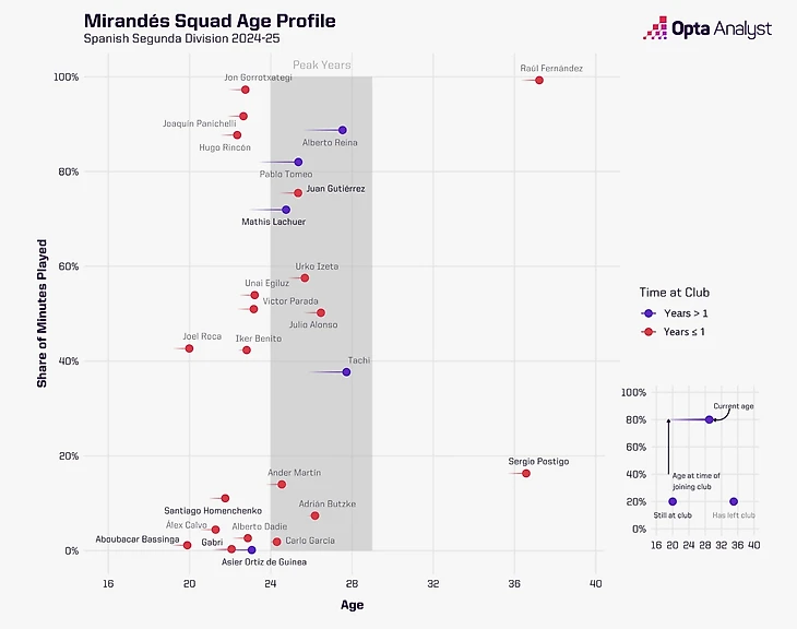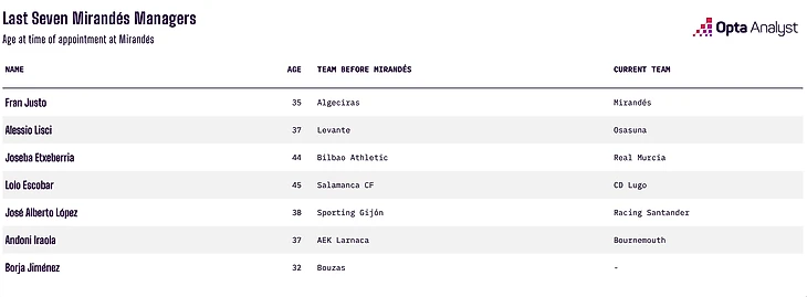 Главный архитектор этой модели — спортивный директор Альфредо Мерино, человек с редкой репутацией: в прошлом он возглавлял молодёжный скаутинг «Реала», потом «Сельты», прошёл через множество региональных клубов, прежде чем получить свободу действия в «Мирандесе».